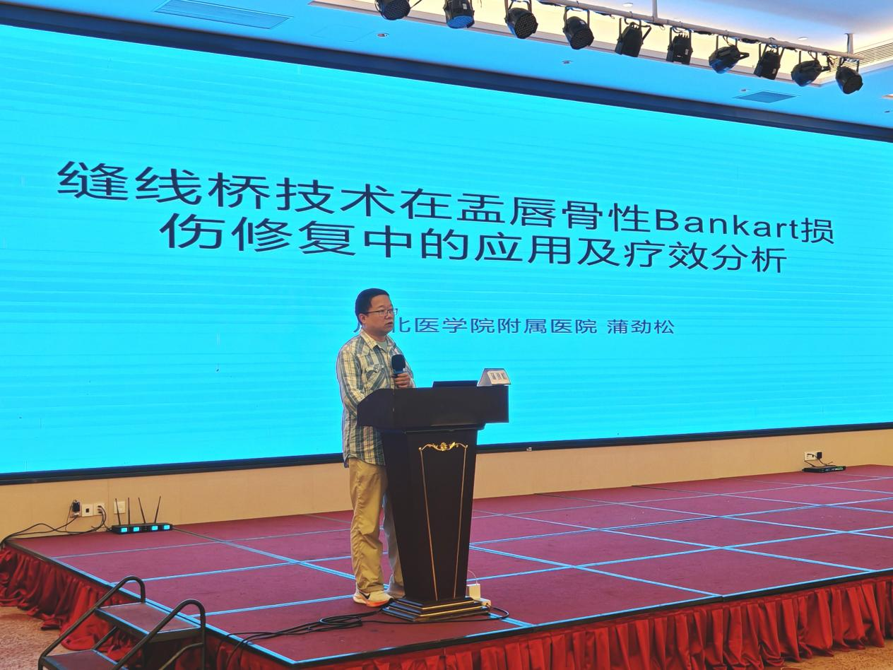 蒲劲松教授则就“缝线桥技术在盂唇骨性Bankart损伤修复中的应用及疗效分析”进行了汇报,展示了该技术在肩关节不稳治疗中的良好临床效果与稳定性。