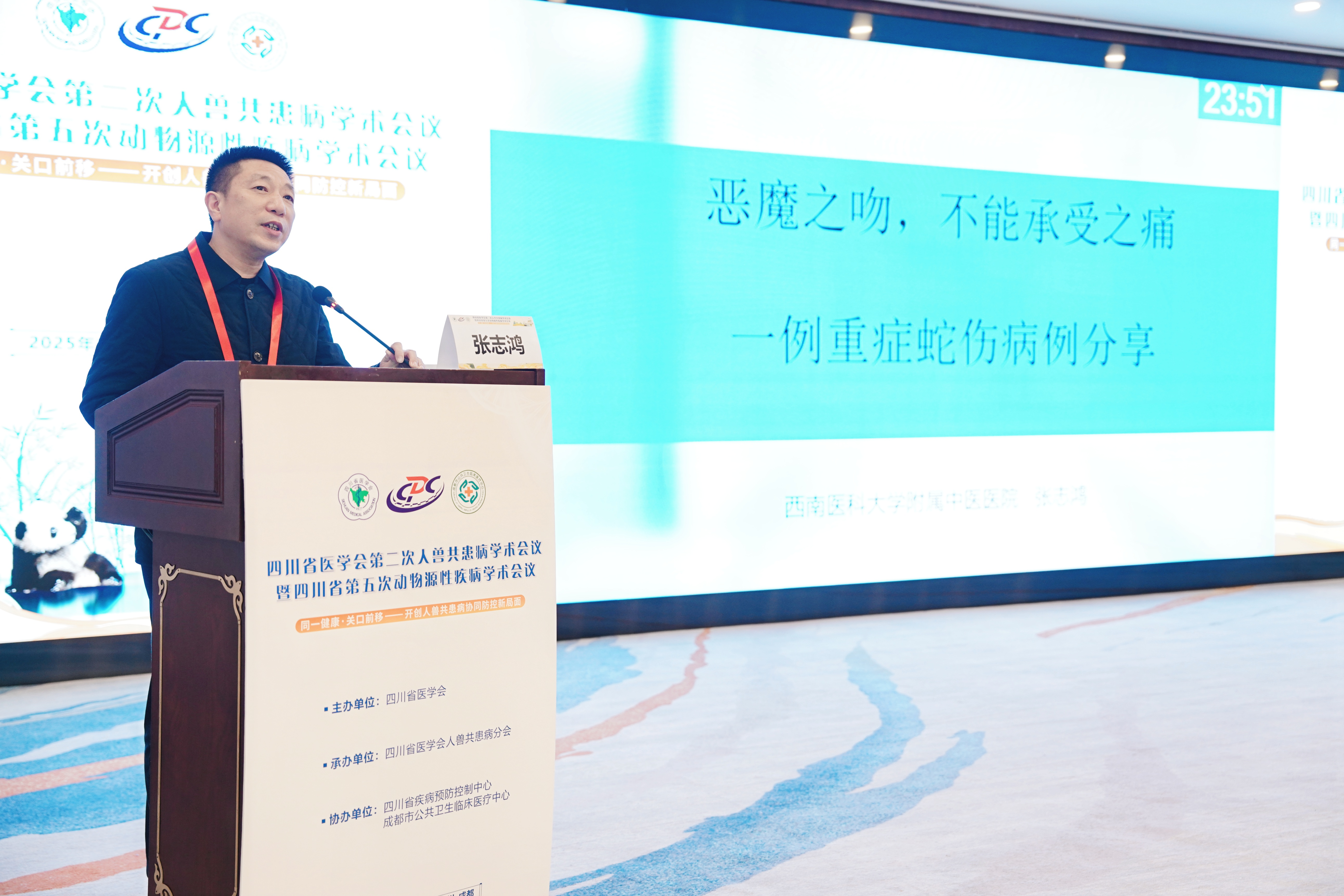 其它动物源性疾病防治板块,四川省疾病预防控制中心周兴余教授就《四川省基孔肯雅热疫情与处置》、四川大学华西医院王晓辉教授就《血吸虫病的临床诊疗》、泸州市疾病预防控制中心蒋德勇教授就《“破”防有道-外伤后破伤风科学预防》、成都市公共卫生临床医疗中心蒋红梅教授就《重症破伤风临床救治》、西南医科大学附属中医医院张志鸿教授就《恶魔之吻-重症蛇伤临床救治》、绵阳市中心医院朱伦刚教授就《红火蚁蛰伤规范化诊疗》分别进行了精彩地学术报告。