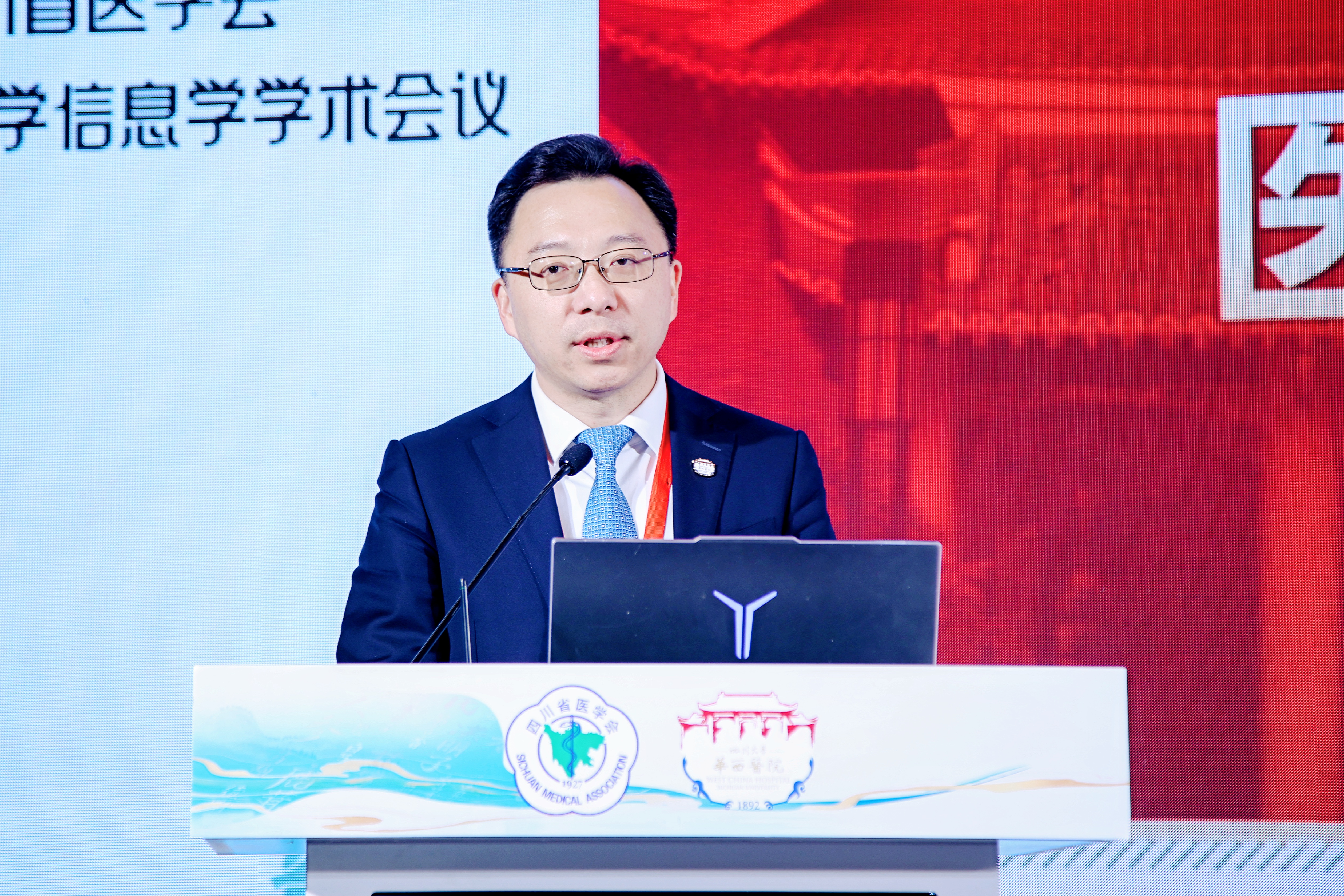 开幕式由四川省医学会医学信息学分会主任委员、四川大学华西医院信息与数据管理部石锐部长主持。四川省医学会陈勇军副会长和四川大学华西医院申文武副书记分别发表了热情洋溢的致辞,表达了对本次会议的高度重视与期待。陈勇军副会长在讲话中系统阐述了学会未来发展方向。他表示,当前我国正处于全面推进健康中国建设的关键时期,四川省医学会将以“三大建设”为引领,以“十化战略”为抓手,推动学术品牌精品化、科技评价科学化、成果转化高效化等高质量发展目标 。申文武副书记在致辞中指出,医学信息学已成为实现公立医院高质量发展的战略支撑与核心动能。他强调,华西医院始终将数字化转型视为践行“人民至上、生命至上”理念的重要路径,致力于构建覆盖“防—诊—治—管”全流程的智慧健康服务体系,并期待与各方携手共建开放、包容、协同的医学信息学创新生态。