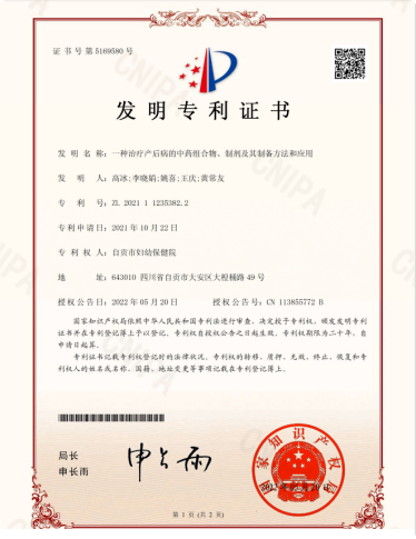 本成果是一项治疗产后病的系列中药组合物、制剂及其制备方法的发明专利(临床应用商标“产瑞达”),获自贡市科学技术进步奖三等奖,是对产后血晕、产后腹痛、产后血劳、产后痉病、产后发热、产后身痛、产后抑郁、产后恶露不绝、产后小便不通、产后缺乳等“产后病”的中药膏方剂型,通过临床科研观察及应用推广,治疗效果满意,安全可靠。