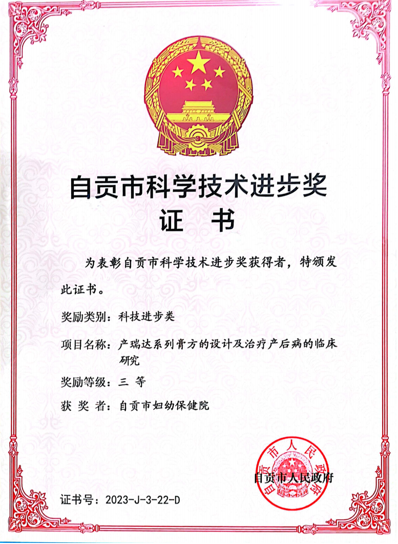 自贡市妇幼保健院研制的产瑞达系列膏方,具备口感佳、服用便捷、易保存携带等优势,可针对性治疗四种产后病,能有效提升产妇身心生活质量,社会效益显著。